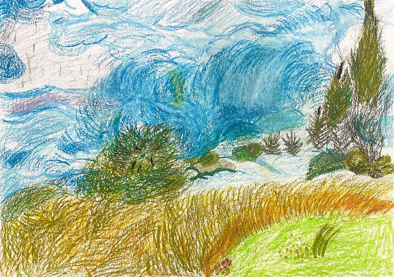 VERONICA DUMITRACHE, “Cântare”, creioane colorate, A4