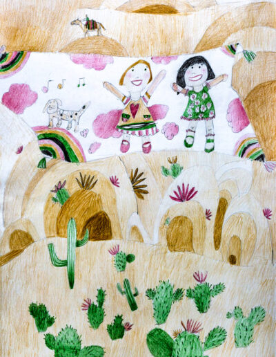 VERONICA DUMITRACHE, “Păsări È™i cactuÈ™i”, creioane colorate, A4