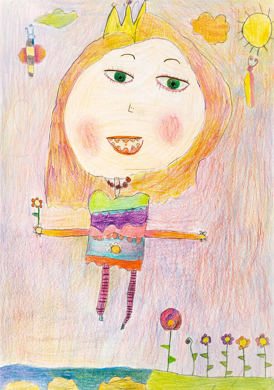 EVA DUMITRACHE, “ÃŽnălÈ›area zmeului”, creioane colorate, A4